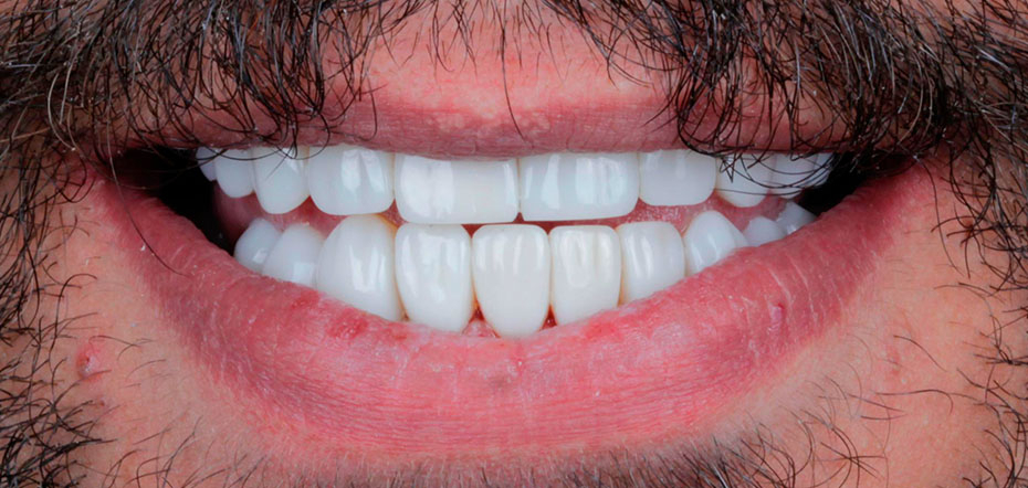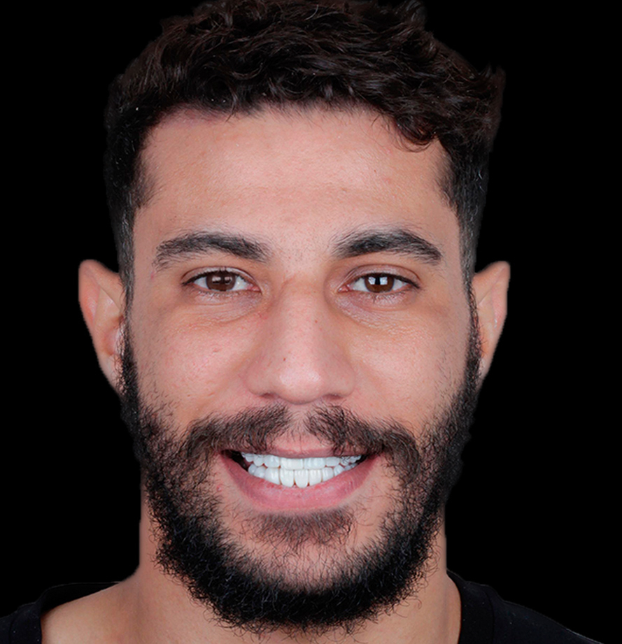 O paciente já tinha lentes de resina mas não estava feliz com o resultado. Realizamos reabilitação total com lentes em resina composta sem desgasta. Brilho, transparencia e naturalidade.